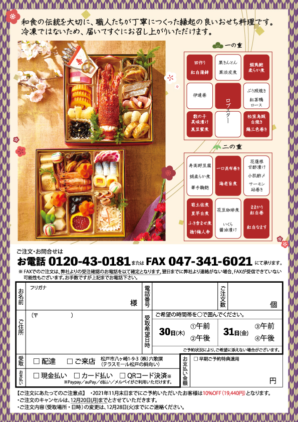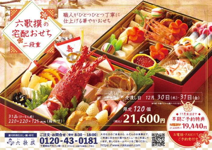 販促物(松戸・六歌撰)おせち料理チラシ2021 オモテ面